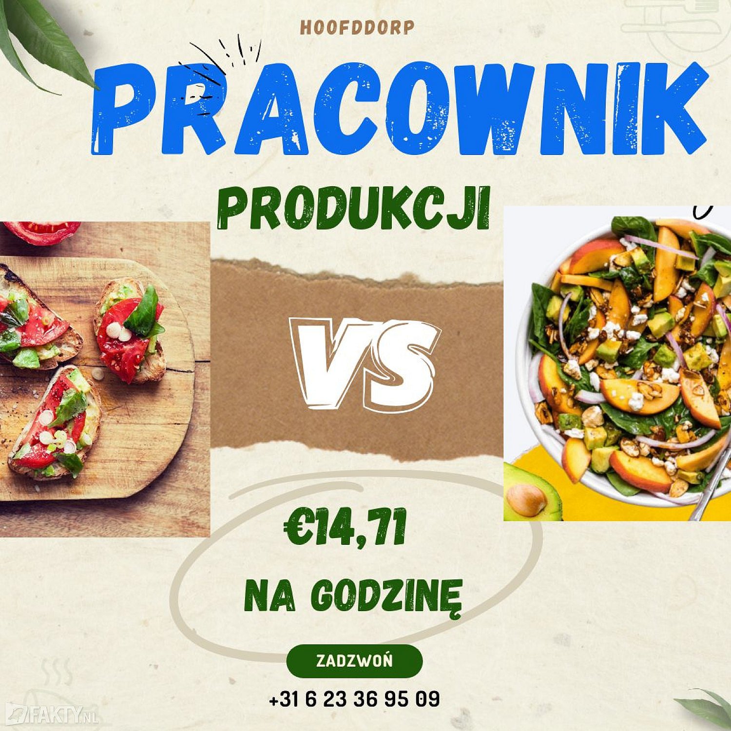 Zainteresowała Cię ta oferta? Zadzwoń 06 23 36 95 09 lub wyślij CV na adres e-mail: [email protected] z dopiskiem produkcja żywności lub produkcja żywności z potencjałem.